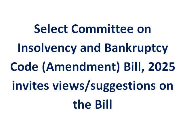 Select Committee on Insolvency and Bankruptcy Code (Amendment) Bill, 2025 invites views/suggestions on the Bill