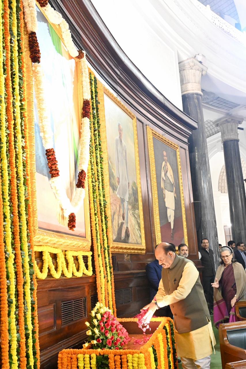 Lok Sabha Speaker pays floral tributes to Smt. Indira Gandhi
