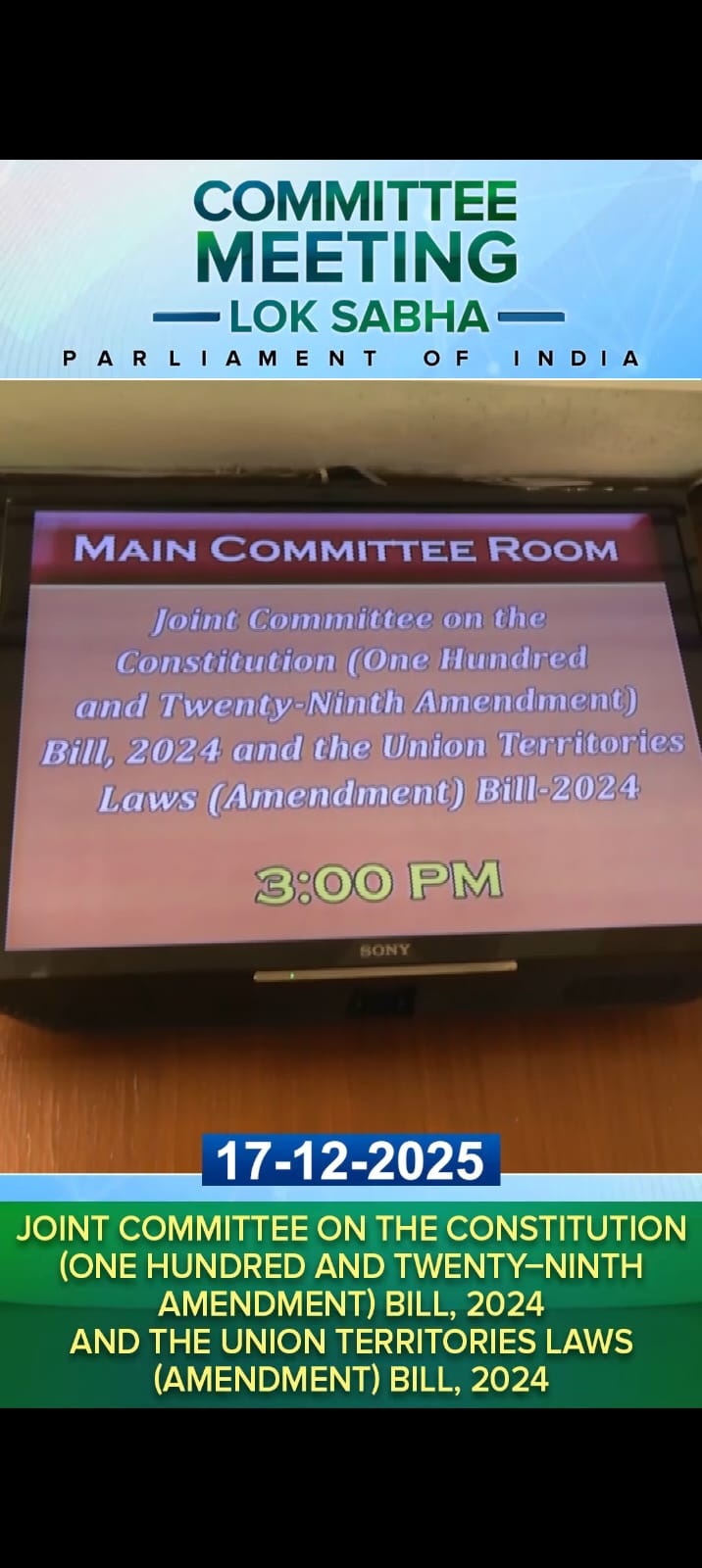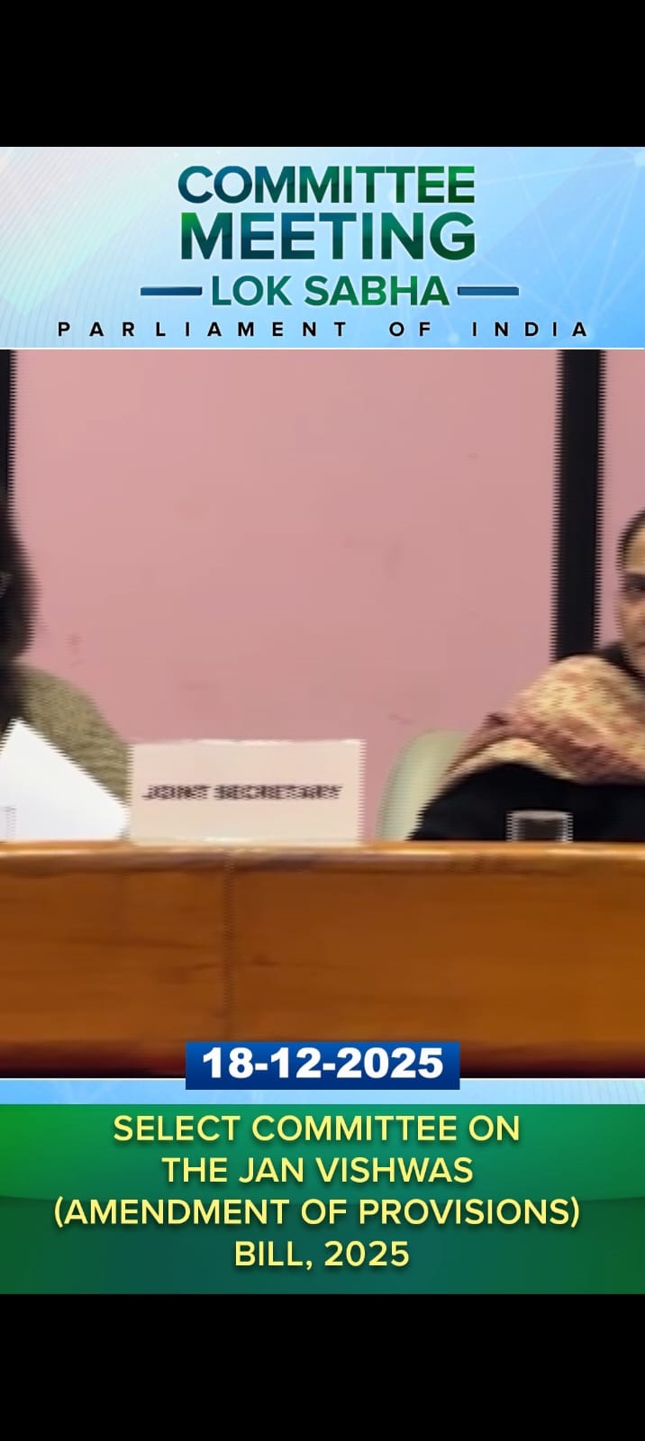 On 18 December 2025, the Select Committee on the Jan Vishwas (Amendment of Provisions) Bill, 2025, chaired by Shri Tejasvi Surya, MP, held briefing by the representatives of the Ministry of Home Affairs, the Municipal Corporation of Delhi and the New Delhi Municipal Council on the amendments proposed in (i) The Delhi Municipal Corporation Act, 1957 and (ii) The New Delhi Municipal Council Act, 1994 under the Jan Vishwas (Amendment of Provisions) Bill, 2025. The Committee also heard the views/suggestions of stakeholders of various Traders Associations and RWAs of Delhi, and the views of Shri Gautam Chikermane, Vice President, Observer Research Foundation, New Delhi, and Shri Rishi Agrawal, Co-founder and CEO, TeamleaseRegtech, on the Jan Vishwas (Amendment of Provisions) Bill, 2025.